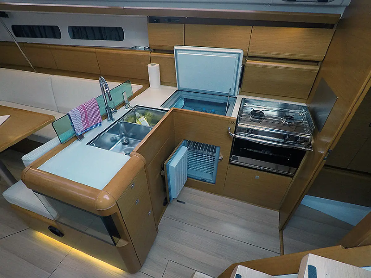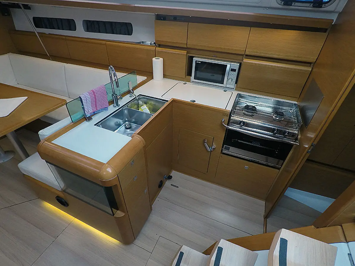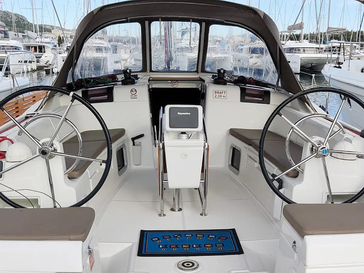 Equipped with bow thruster, heating, GPS plotter in cockpit, microwave oven, 230 V inverter for all sockets...