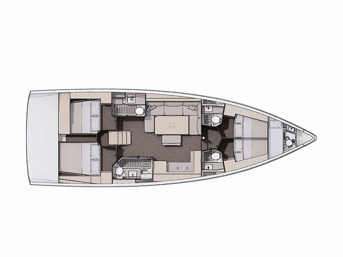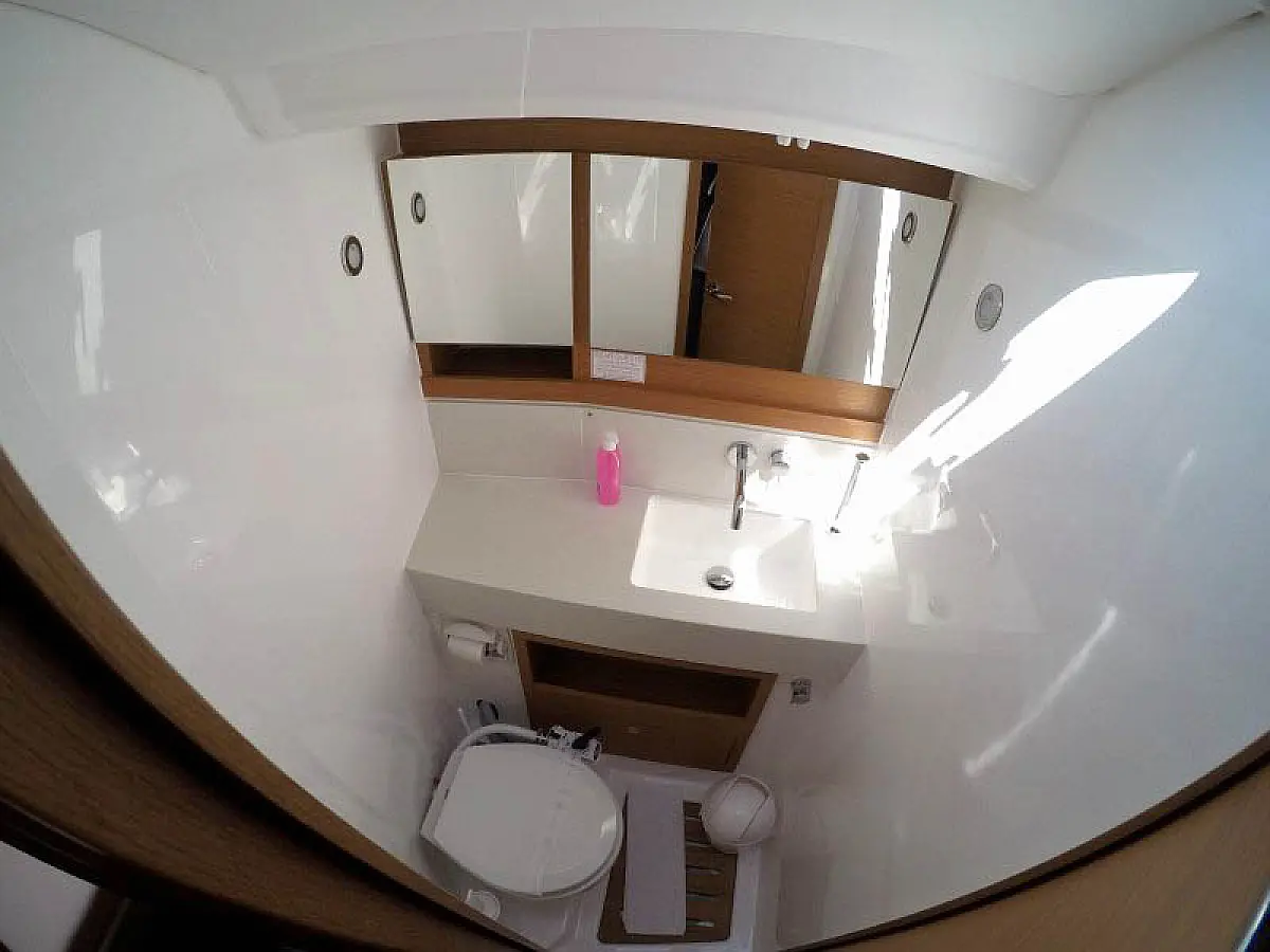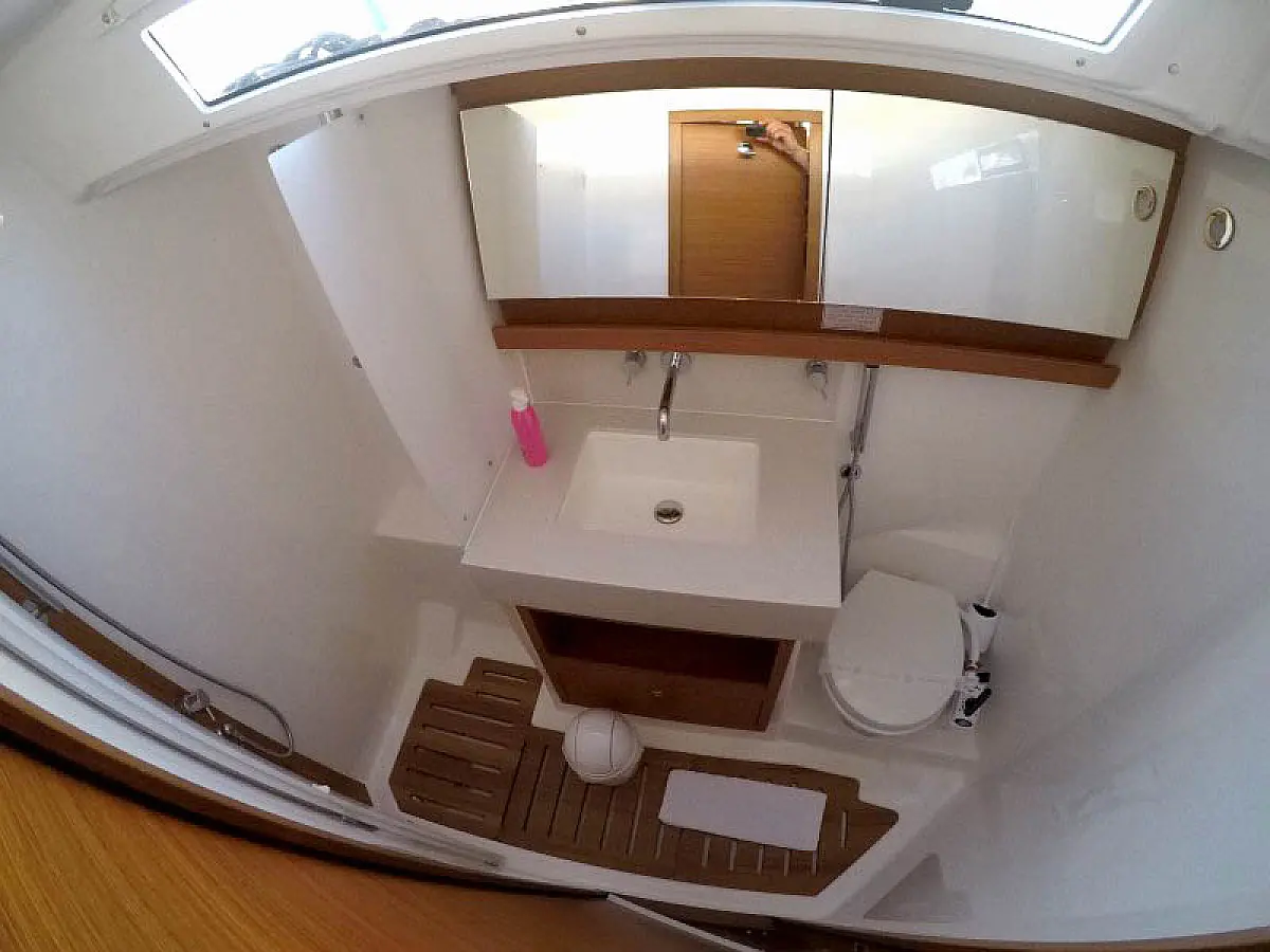 Equipped with 4 double cabins + 2 salon berths, 4 toilets, large cockpit with bathing platform and with fridge, grill and sink in cockpit.