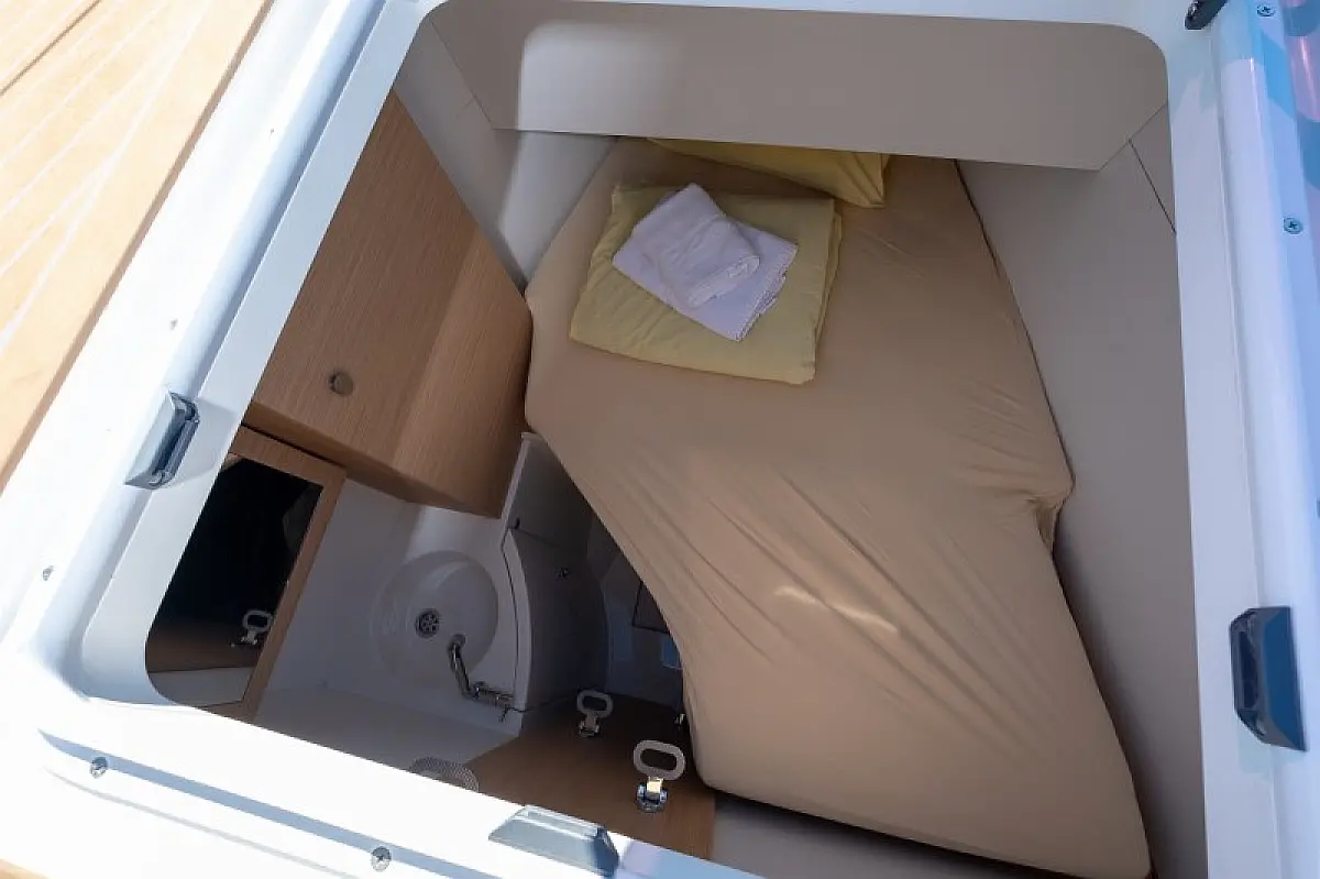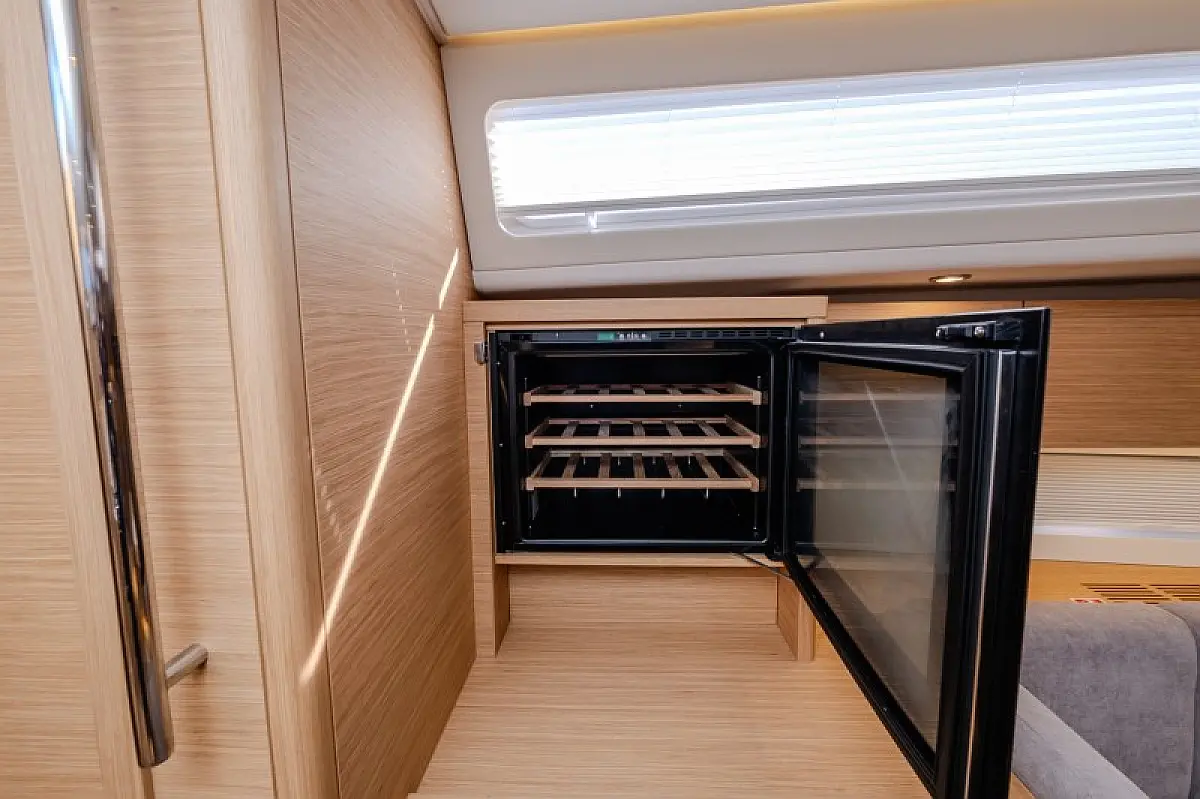 Generator, Klima, Hladilnik, Blazine v kokpitu, Sprayhood, Izvenkrmni motor, Pomožni čoln, Električni vitli, Wi-Fi in internet