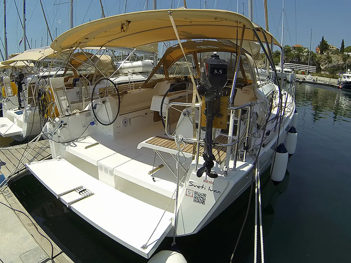 Great Dufour model, huge space inside and in cockpit, 3 large double cabins, 2 large toilets, self tacking jib (optional), small enough for easy handling, big enough for a large company with full comfort.