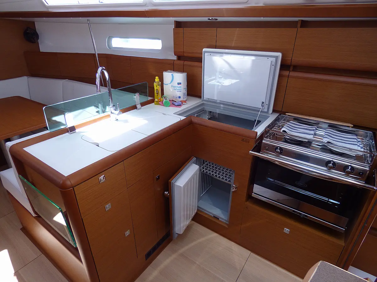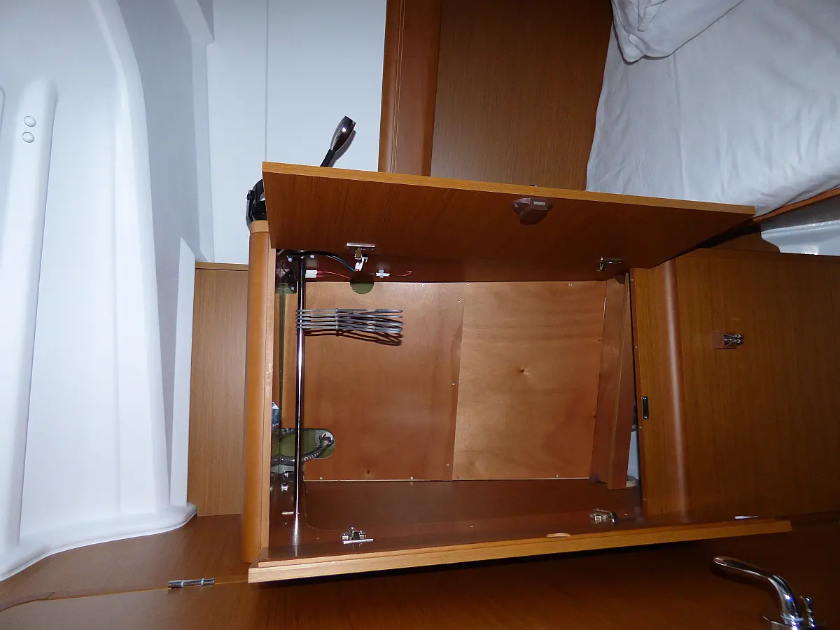 Zvočniki v kokpitu, Klima, Kopalna ploščad, Hladilnik, Inverter, Izvenkrmni motor, Pomožni čoln, Sprayhood, Bimini, Blazine v kokpitu