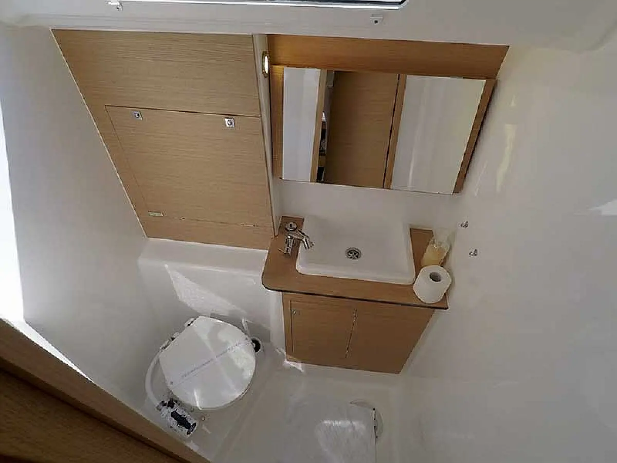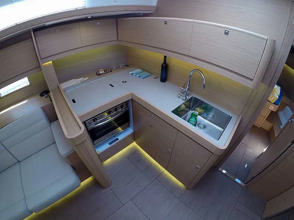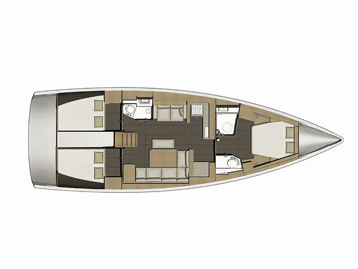 Dufour 460 Avalon II, luxurious owner's version with 3 double cabins + 2 berths in salon and 2 toilets, equipped with jet bow thruster, folding propeller, taller must, upgraded winches + electrical main sail winch, black fiberglass steering wheels, oak interior...